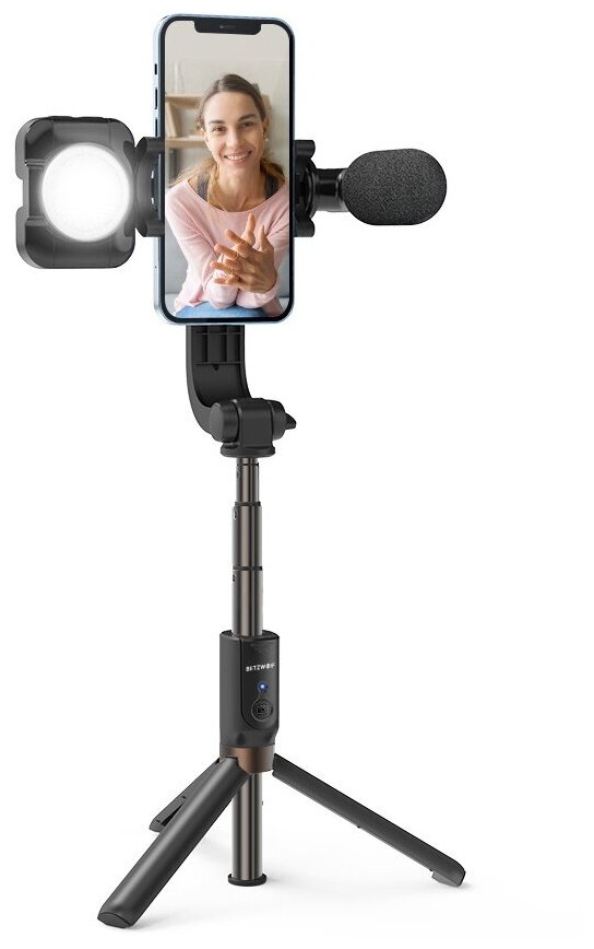 BlitzWolf BW-BS15 Tripod Selfie Stick with Fill Light & Microphone Black