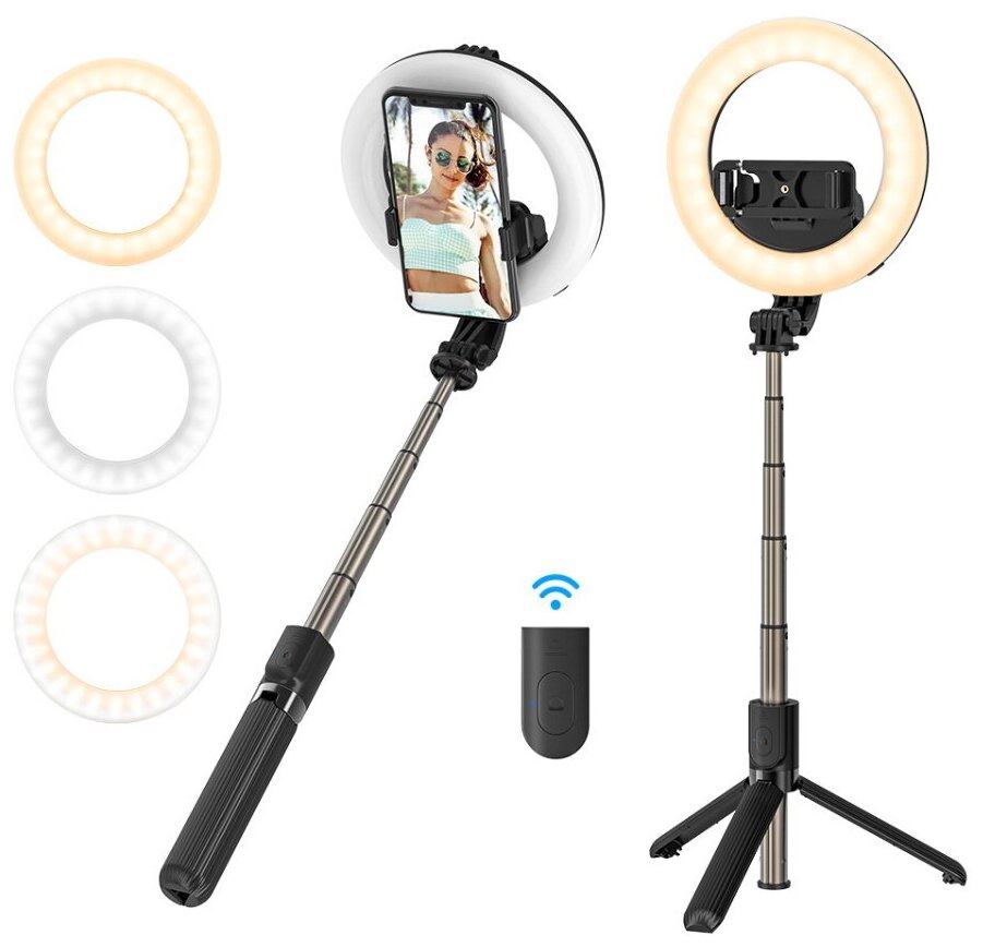 BlitzWolf BW-BS8 Pro Fill Light Selfie Stick Tripod Foldable Black