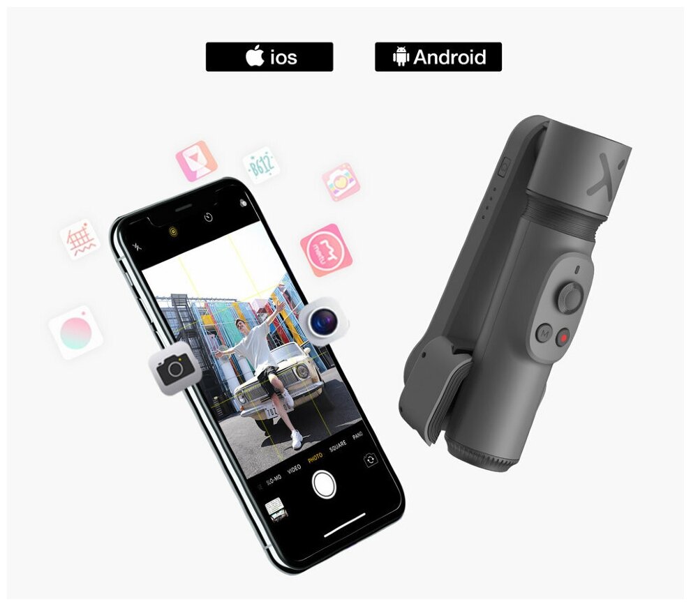 Type: electric, mount: smartphone, use: manual, bluetooth, battery: built-in, number of stabilization axes: two