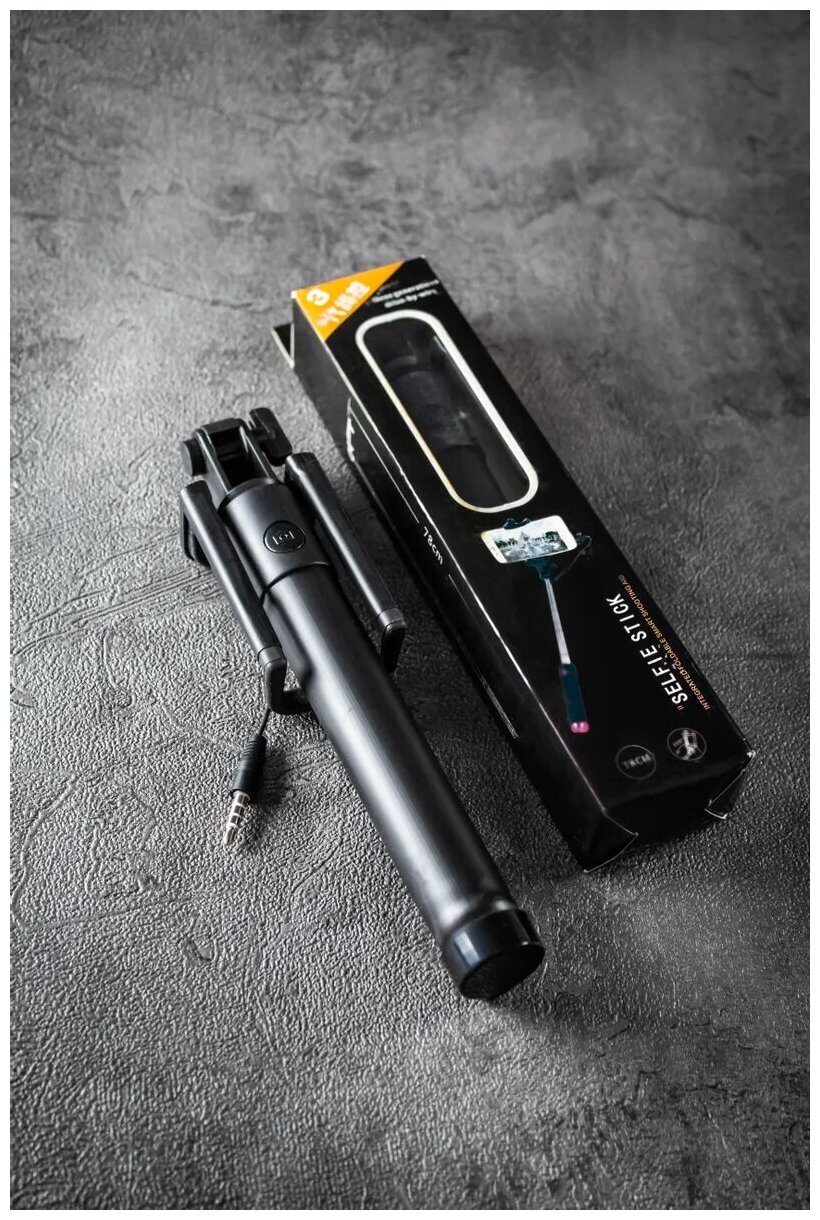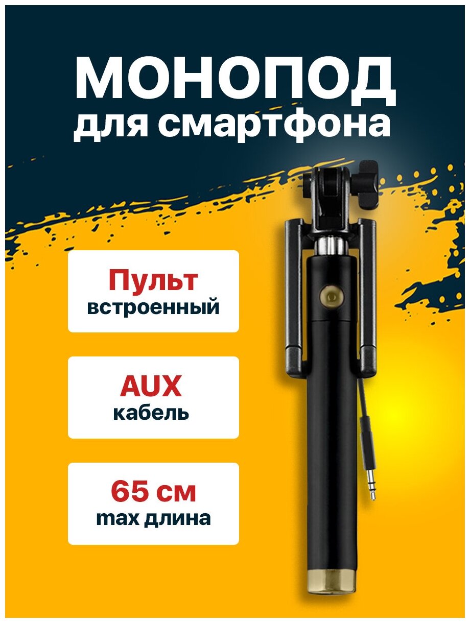 Monopod AMFOX S3 with AUX cable and built-in remote control, green button for remote control / tripod for phone, stabilizer for phone, selfie stick for smartphone, holder with selfie remote control, for photo and video