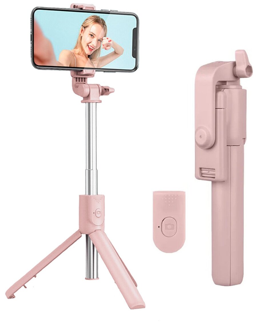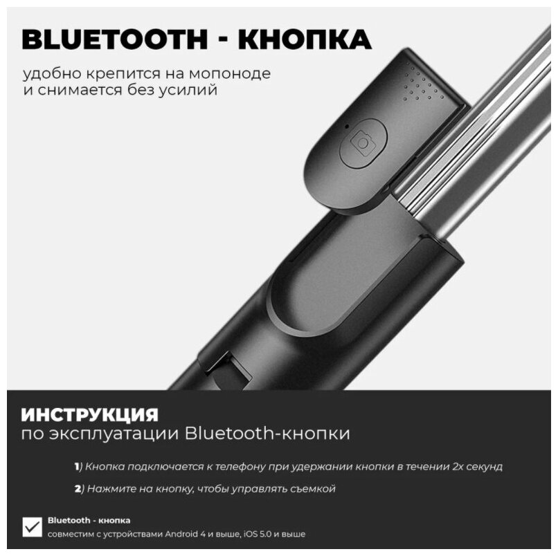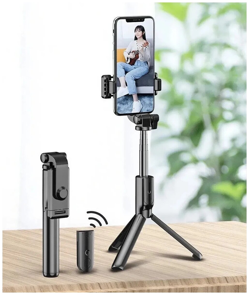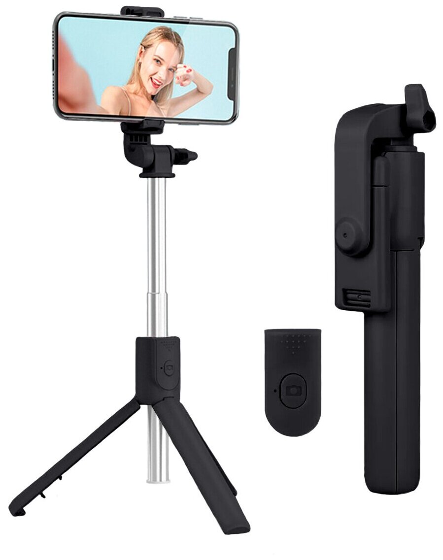 Monopod selfie tripod R1S, built-in tripod tripod with adjustable phone holder and Bluetooth remote control, black
