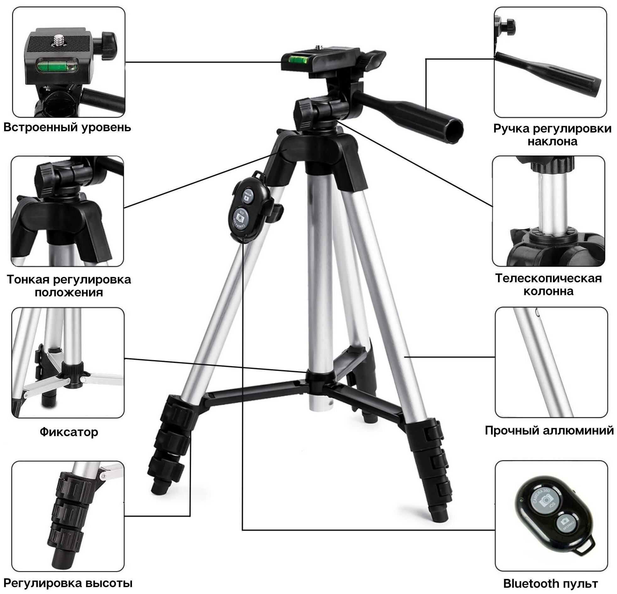 Tripod/monopod, bluetooth, maximum length 1020 mm, weight 362 g