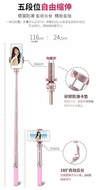 Monopod for selfie, bluetooth, maximum length 1180 mm