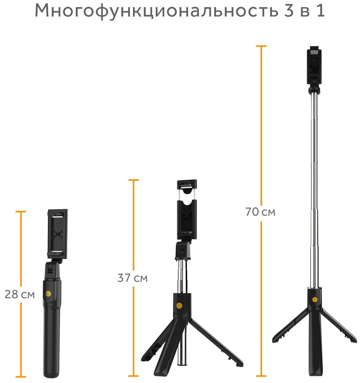 Monopod Goodly Selfie Stick K07, built-in tripod tripod with adjustable phone holder and Bluetooth from 28 cm to 70 cm, color: black
