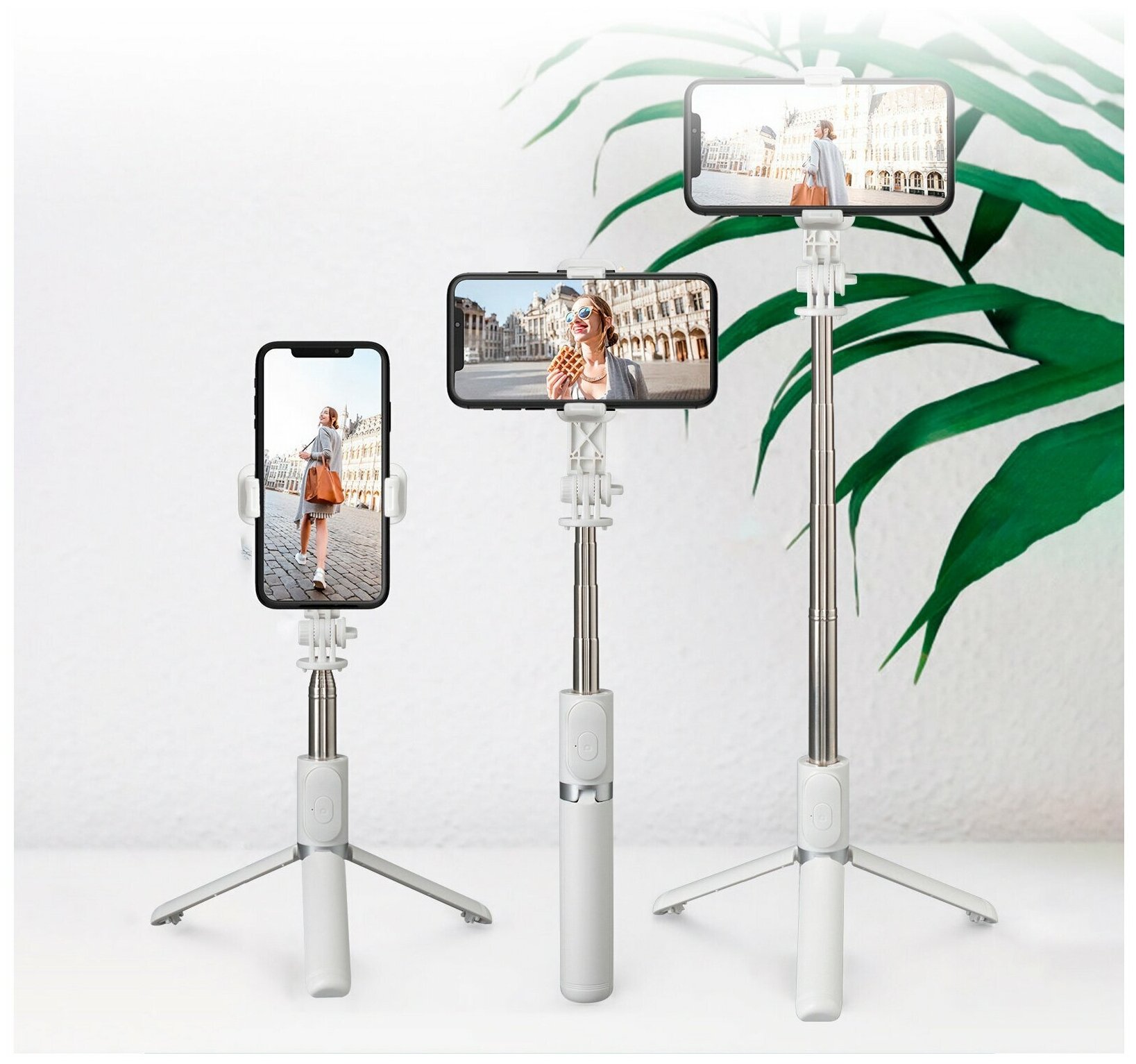 Monopod Goodly Selfie Stick Q01, built-in tripod tripod with adjustable phone holder and Bluetooth from 28 cm to 101 cm, color: white