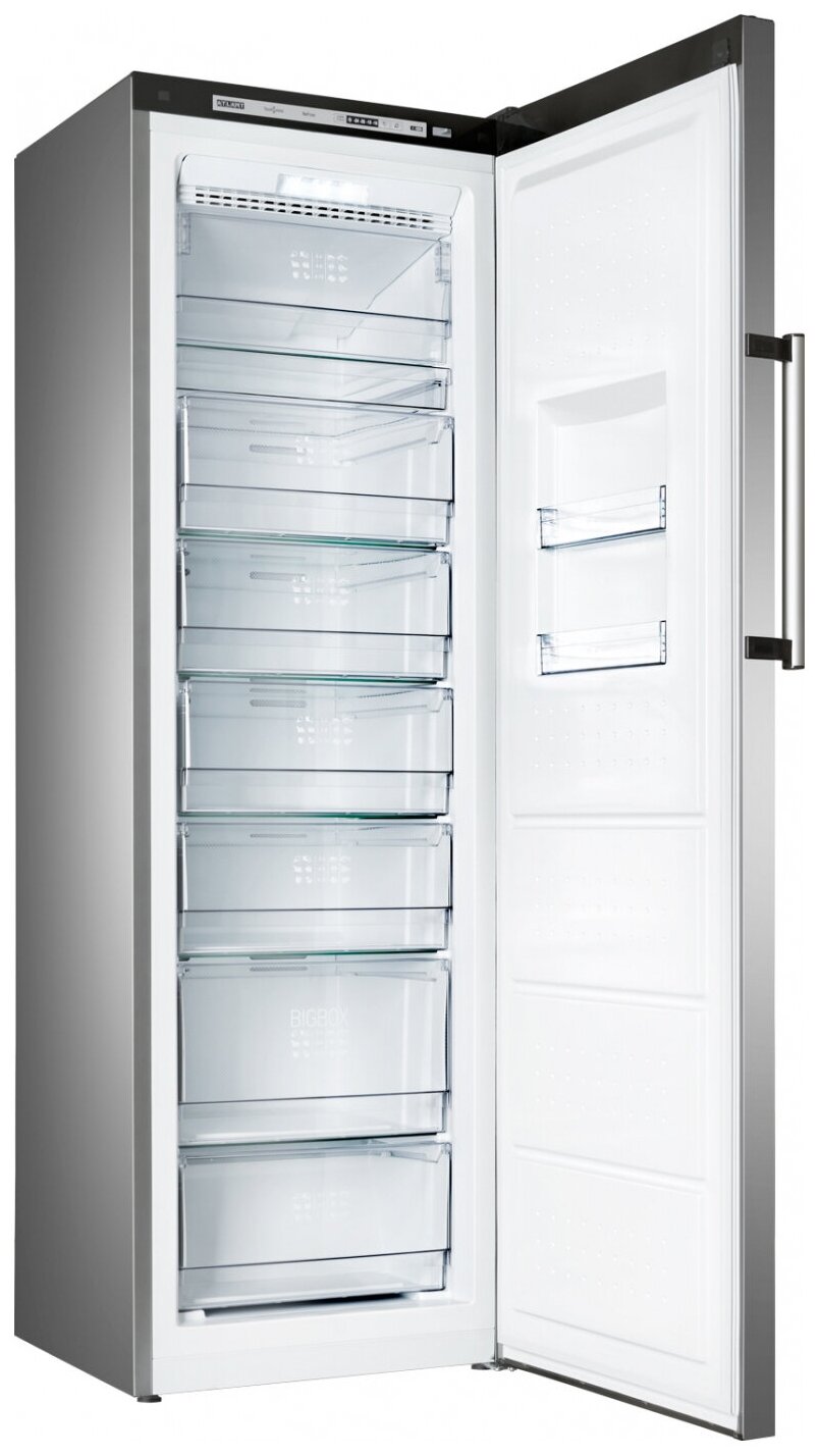 Freezer type: cabinet, defrosting: No Frost, total volume: 278 l, height: 186.80 cm, width: 59.50 cm, depth: 62.80 cm, energy class: A, climate class: N, SN, ST, T, number of drawers/ shelves: 8, body color: gray, minimal