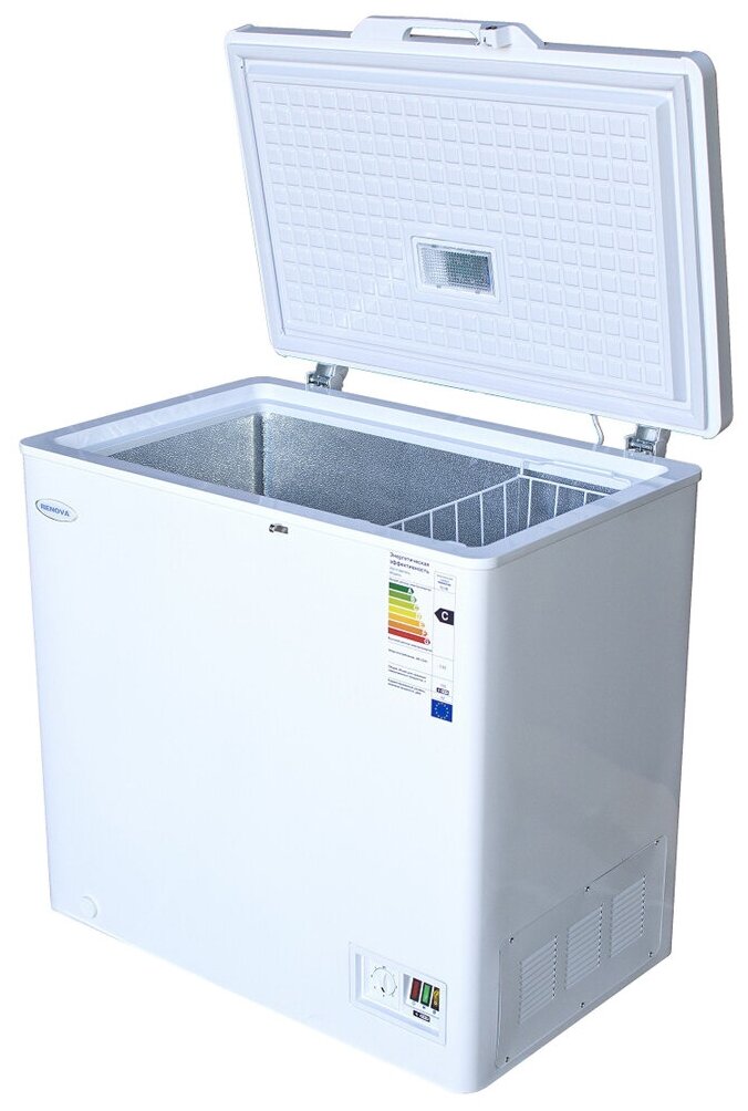Freezer type: chest, defrosting: manual, total volume: 155 l, height: 83.50 cm, width: 82.20 cm, depth: 56.50 cm, energy class: C, case color: white, control type: electromechanical, super freezing, power