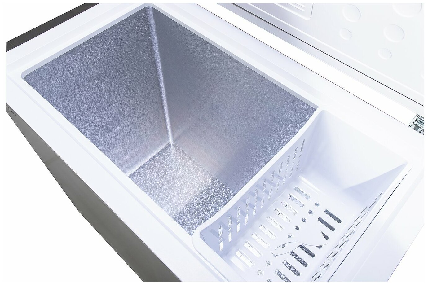 Freezer type: chest, defrosting: manual, total volume: 200 l, height: 84.50 cm, width: 90.50 cm, depth: 54.50 cm, energy class: A, climate class: ST, number of drawers/shelves: 1, body color: white, minimal