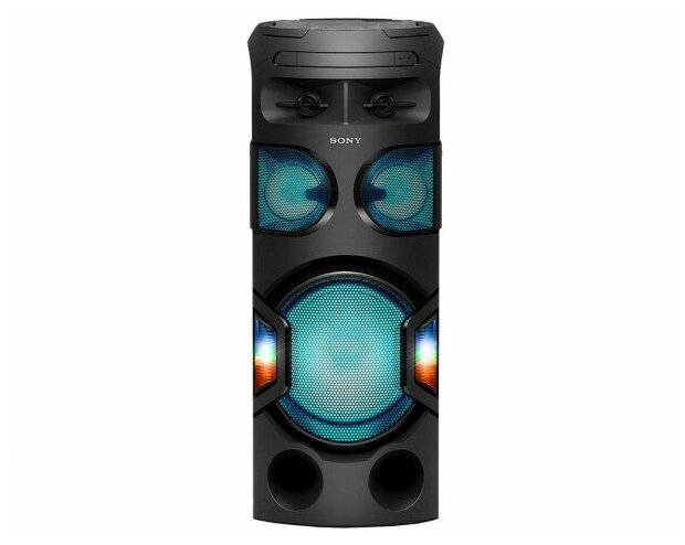 Four-way speaker system with double bass reflex; handle and wheels for easy transportation; splash-proof control panel; lighting effects; gesture control; voice control; complex