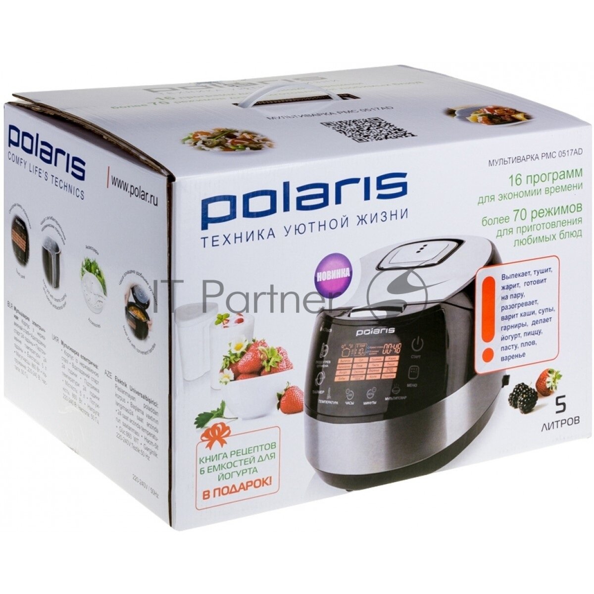Type: multicooker, volume: 5 l, cooking programs: jam, boiling, baking, frying, yogurt, cereal, milk porridge, multicooker, pasta, pizza, pilaf, steaming, soup, stewing, bowl coating type: ceramic, set aside