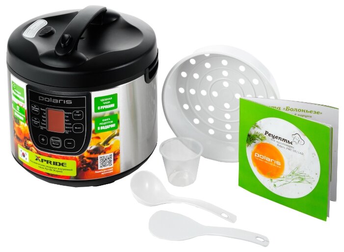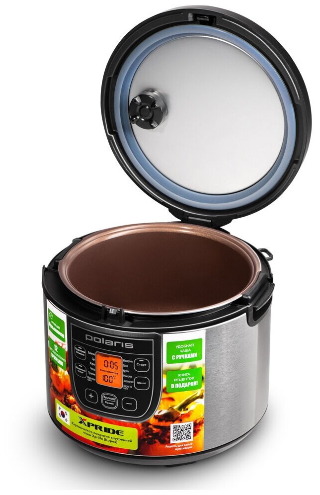 Type: multicooker, volume: 5 l, cooking programs: baking, frying, cereals, milk porridge, multicooker, pilaf, steaming, stewing, type of bowl coating: ceramic, delayed start, keep warm, add
