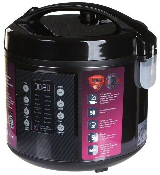 Type: multicooker, volume: 5 l, cooking programs: baking, frying, cereals, milk porridge, pilaf, jellied meat, delayed start, keep warm, control type: electronic, control from a smartphone, display