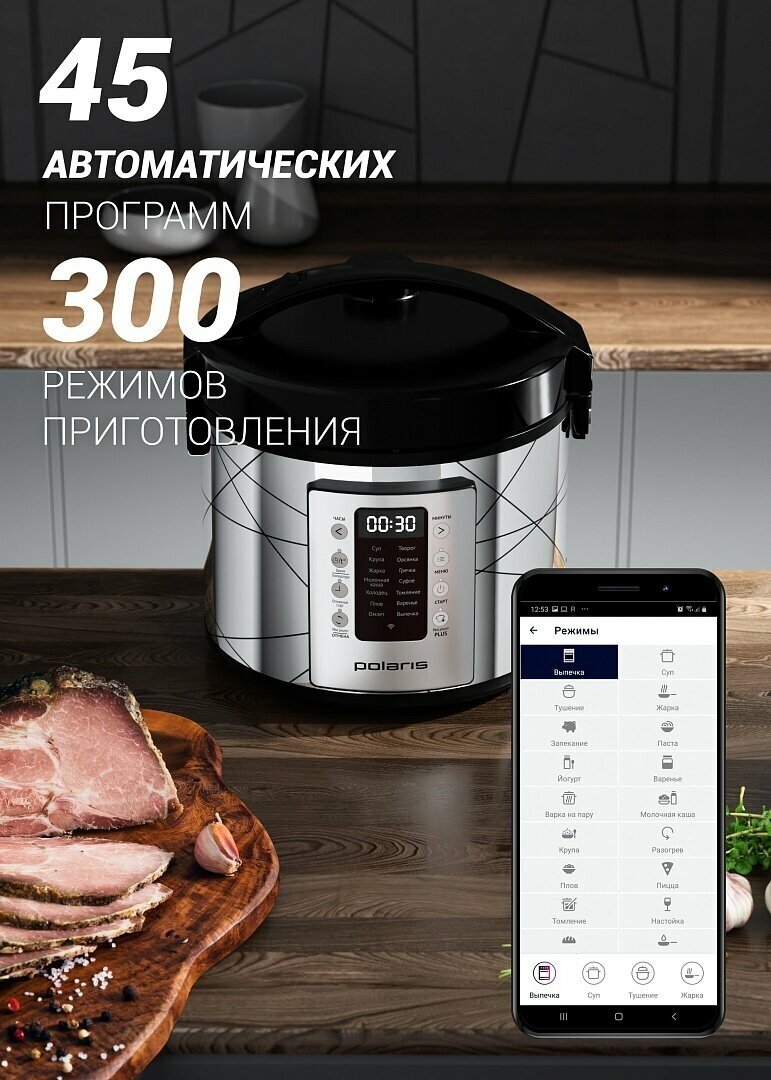 300 cooking modes; “My Recipe PLUS” function; operating modes: soup, jellied meat, jam, cottage cheese, oatmeal