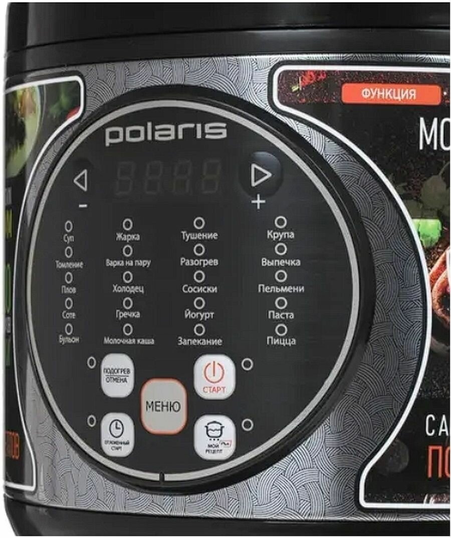 Type: multicooker, volume: 5 l, cooking programs: baking, frying, roasting, yogurt, cereal, milk porridge, pasta, dumplings, pizza, pilaf, soup, stewing, jellied meat, steaming, casserole, heating, your own recipe, sauté, sterilized