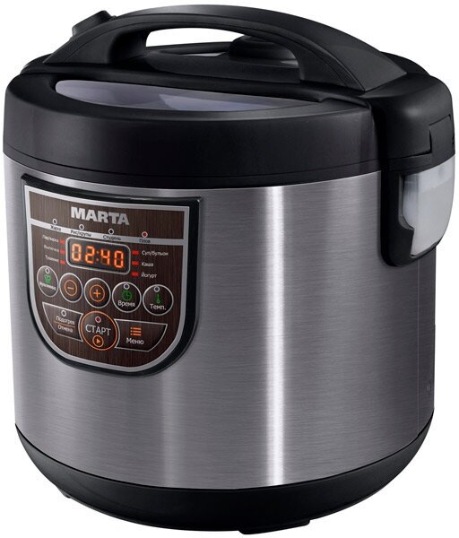 Type: multicooker, volume: 5 l, cooking programs: baking, frying, roasting, yogurt, cereal, milk porridge, pasta, dumplings, pizza, pilaf, soup, stewing, jellied meat, steaming, casserole, heating, your own recipe, sauté, sterilized