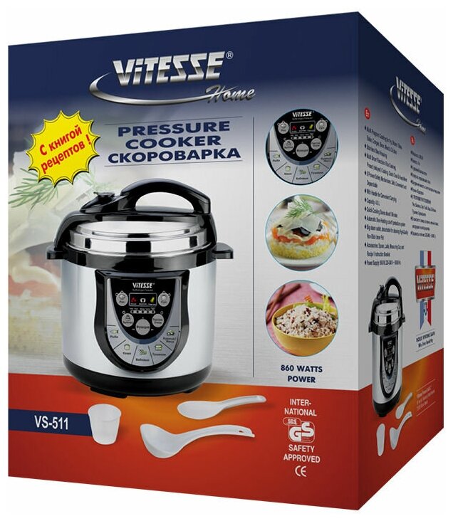 Type: pressure cooker, volume: 4 l, cooking programs: boiling, baking, frying, cereal, milk porridge, steaming, stewing, type of bowl coating: Teflon, keep warm, control type: electronic, display