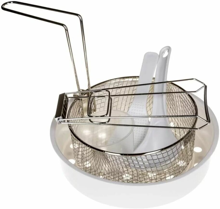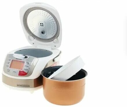 18 programs with manual settings; book of recipes; protection against switching on without a bowl; equipment: spoon, ladle, measuring cup, container for steaming; LCD, display monochrome English