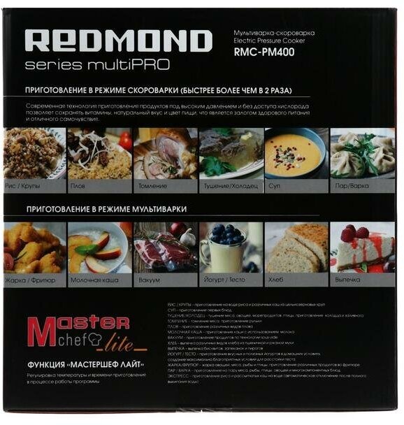 Description: Type: multicooker, volume: 5 l, cooking programs: baking, frying, roasting, yogurt, cereal, milk porridge, pasta, dumplings, pizza, pilaf, soup, stewing, jellied meat, steaming, casserole, heating, your own recipe, sauté, sterilized