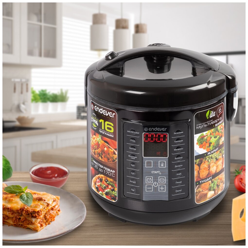 16 automatic programs, electronic control, cooking delay timer up to 24 hours, automatic heating up to 24 hours, ability to change temperature and cooking time in automatic programs