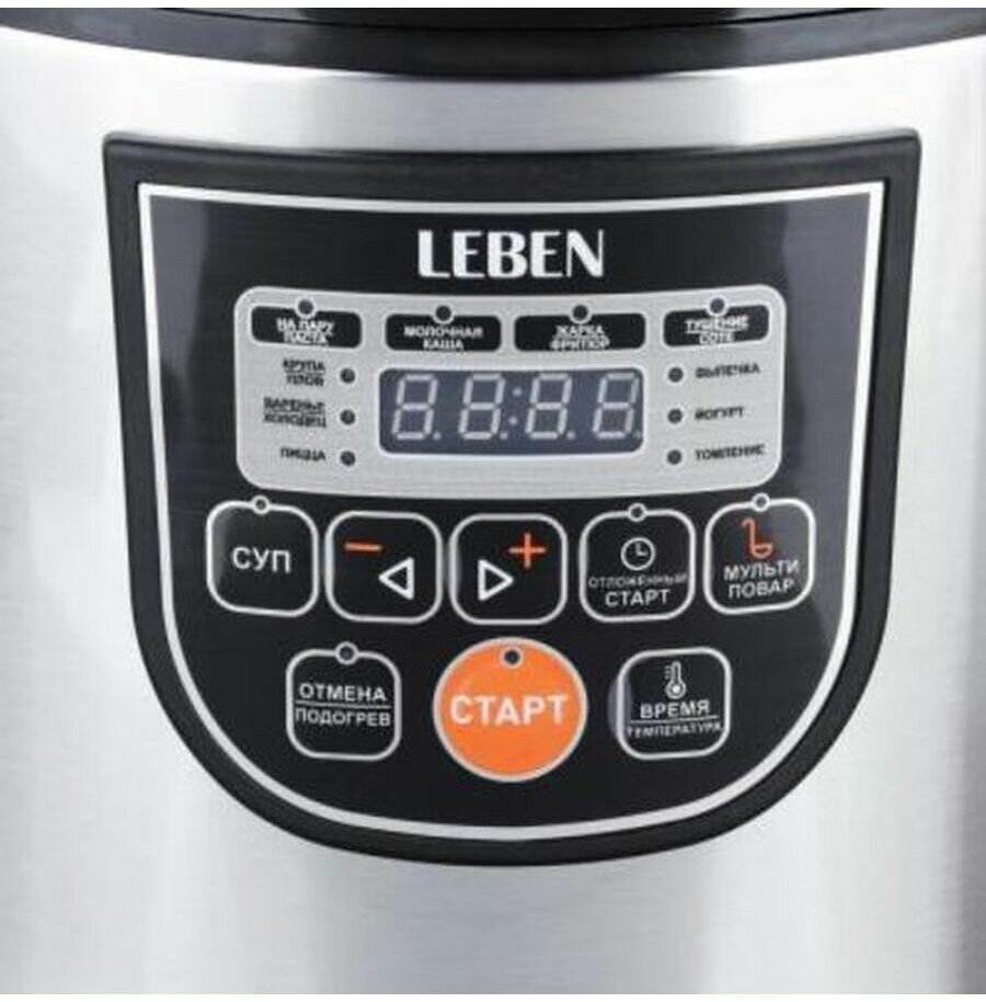 Type: multicooker, volume: 5 l, cooking programs: baking, frying, roasting, yogurt, cereal, milk porridge, pasta, dumplings, pizza, pilaf, soup, stewing, jellied meat, steaming, casserole, heating, your own recipe, sauté, sterilized