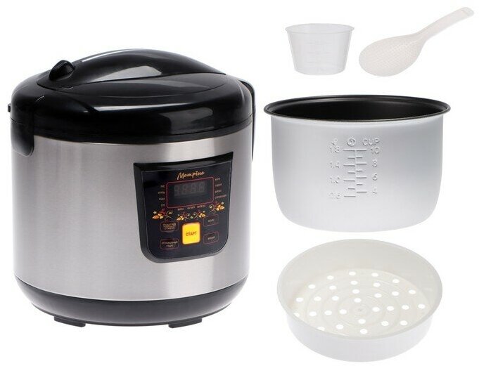 Programs rice, porridge, soup, cooking, sterilization, jam; automatic shutdown of the system when overheated, removable power cord
