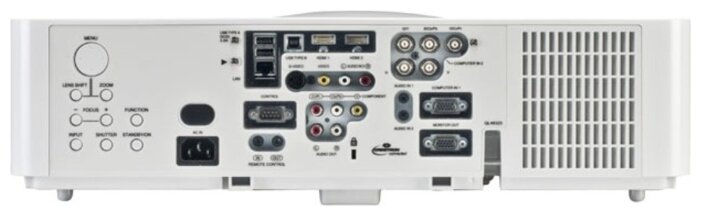 Ethernet, RS-232, USB Type-A x 2, USB Type-B, HDMI input x 2, RGB input, S-Video input, VGA input, RCA audio input, mini jack 3.5 mm audio input, composite video input, input Component video, RCA audio output