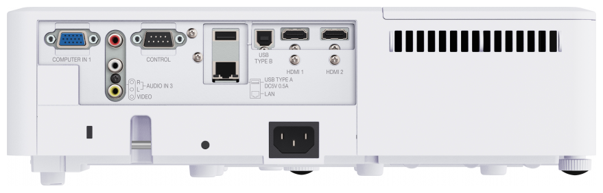 Ethernet, RS-232, USB Type-A, USB Type-B, HDMI input x 2, VGA input x 2, RCA audio input, mini jack 3.5 mm audio input, composite video input