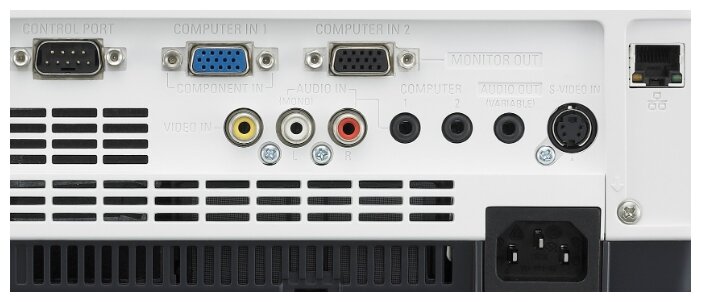 Ethernet, RS-232, S-Video input, VGA input, RCA audio input, mini jack 3.5 mm audio input, composite video input, component video input