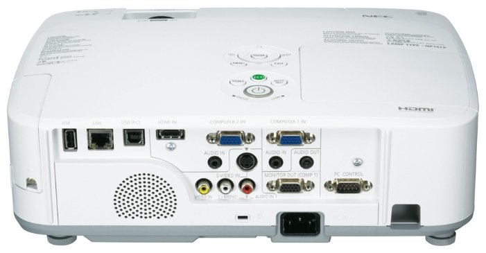 Ethernet, RS-232, USB Type-A, USB Type-B, HDMI input, S-Video input, VGA x 2 input, RCA audio input, mini jack 3.5 mm audio input, composite video input, component video input