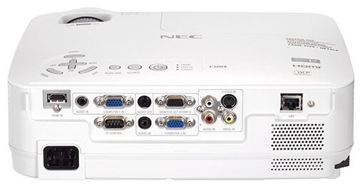 Ethernet, RS-232, HDMI input, S-Video input, VGA x 2 input, RCA audio input, mini jack 3.5 mm audio input, composite video input, component video input
