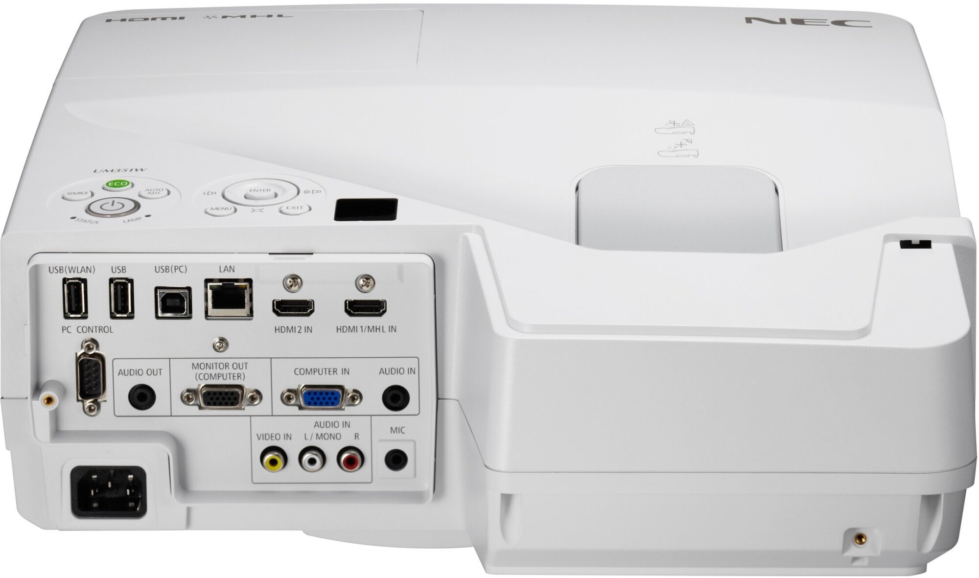 Ethernet, RS-232, USB Type-A x 2, USB Type-B, HDMI input x 2, VGA input, RCA audio input, mini jack 3.5 mm audio input, composite video input, component video input