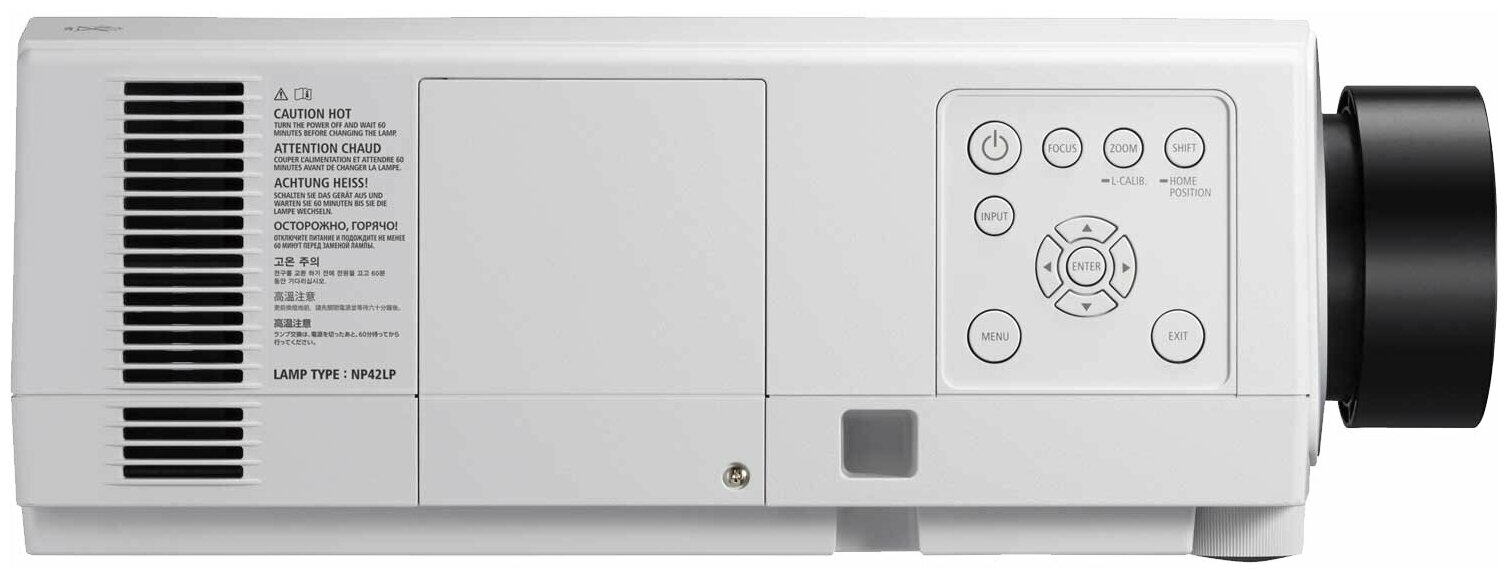 DisplayPort input, HDBaseT interface; 8 optional lenses: NP11FL, NP12ZL, NP13ZL, NP14ZL, NP30ZL, NP40ZL, NP41ZL, NP42ZL