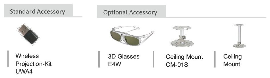 Purpose: office, projector resolution: 1920x1080 Full HD, max. diagonal image size: 7-9 m, luminous flux: 2000-4000 lm, contrast: more than 10000:1, technology: DLP, wireless communication: Wi-Fi, connectors and interfaces: Ethernet, RS