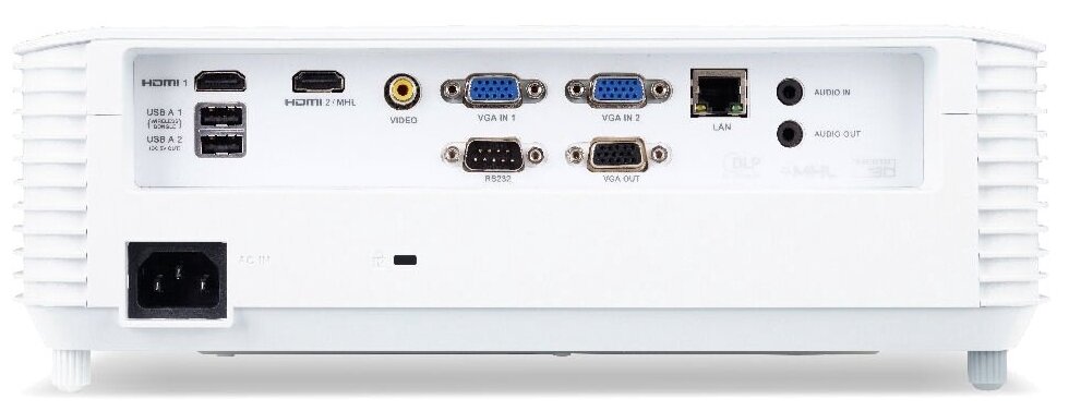 Ethernet, RS-232, USB Type-A x 2, HDMI input x 2, VGA input x 2, mini jack 3.5 mm audio input, composite video input