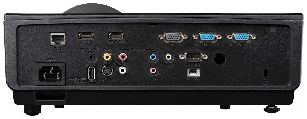 Ethernet, RS-232, USB Type-A, USB Type-B, HDMI input x 2, S-Video input, VGA input x 2, RCA audio input, mini jack 3.5 mm audio input, composite video input