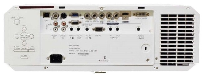 Ethernet, RS-232, USB Type-A, USB Type-B, HDMI input, RGB input, S-Video input, VGA input, RCA audio input x 2, mini jack 3.5 mm audio input, composite video input, component video input
