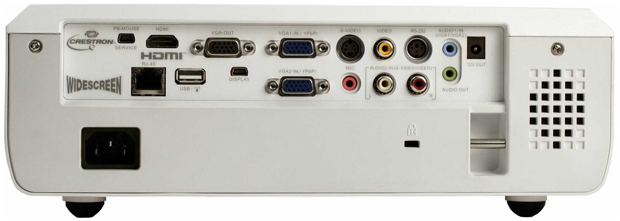 Ethernet, RS-232, USB Type-A, USB Type-B, HDMI input, S-Video input, VGA input x 2, mini jack 3.5 mm audio input, composite video input