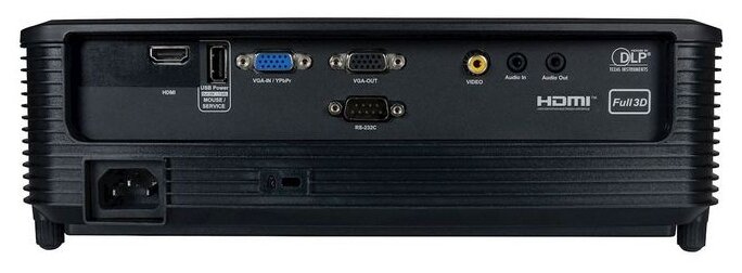 RS-232, USB Type-A, HDMI input, VGA input, mini jack 3.5 mm audio input, composite video input