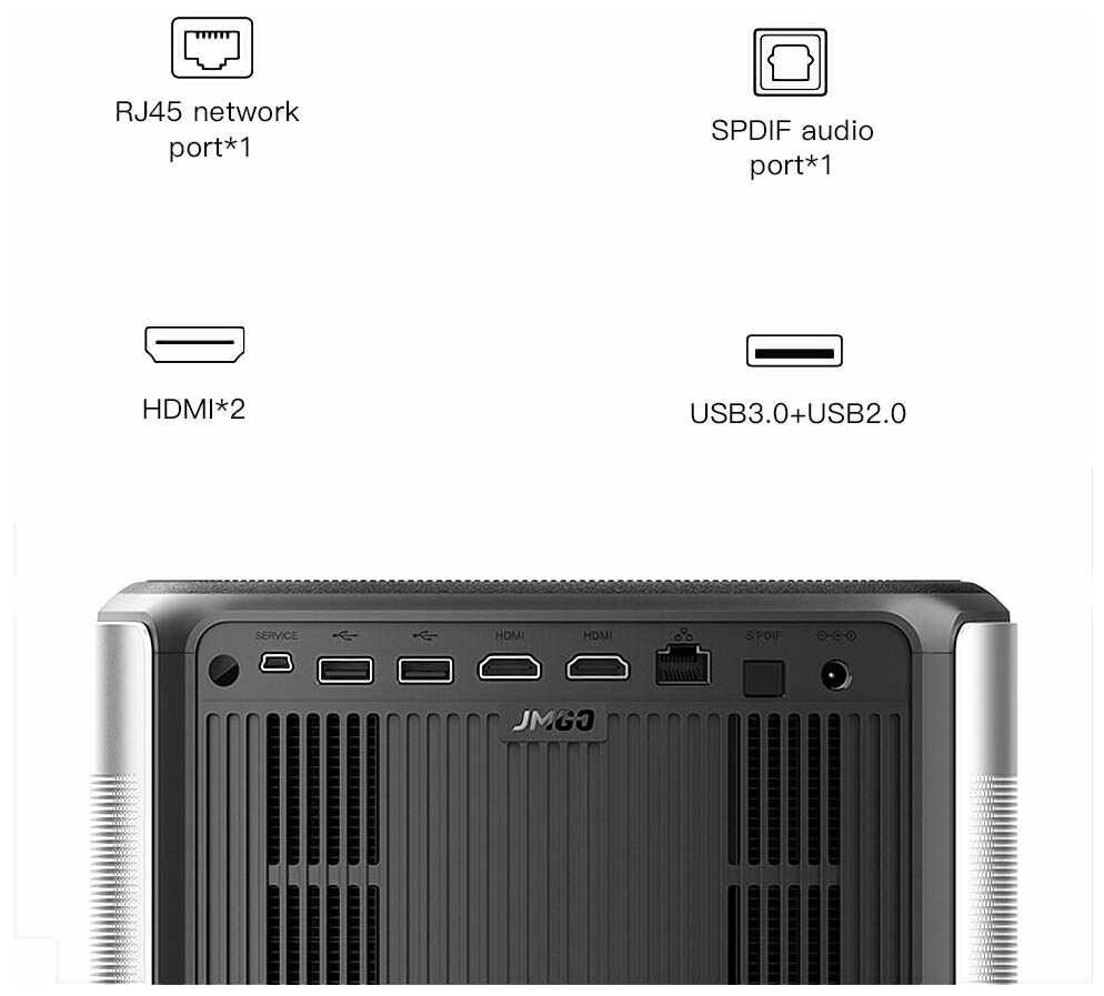 Purpose: for home cinema, projector resolution: 3840x2160, max. diagonal image size: 7-9 m, luminous flux: 1000-2000 lm, contrast: more than 10000:1, technology: DLP, wireless communications: Bluetooth, Wi-Fi, connectors and other