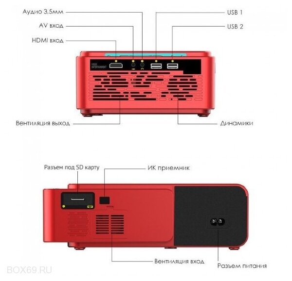 Purpose: for home cinema, projector resolution: 1280x720, max. diagonal image size: 5-7 m, luminous flux: up to 1000 lm, contrast: 1000:1-3000:1, technology: LCD, wireless communication: Wi-Fi, connectors and interfaces: U