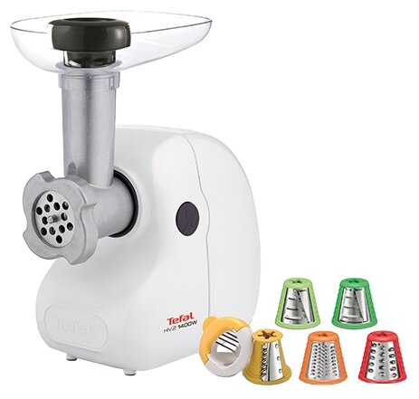 Attachments: disk for minced meat, attachment for kebbe, attachment for preparing sausages, attachment for shredding, attachment-grater, body material: plastic, features: dishwasher safe, rubberized feet, number of pe