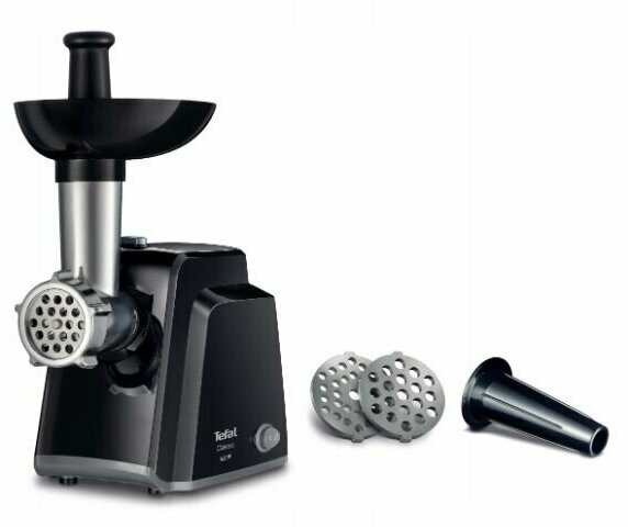 Nozzles: disk for minced meat, nozzle for preparing sausages, body material: plastic, reverse system, productivity: 1.70 kg/min, features: overload protection, dishwasher safe, rubberized feet,