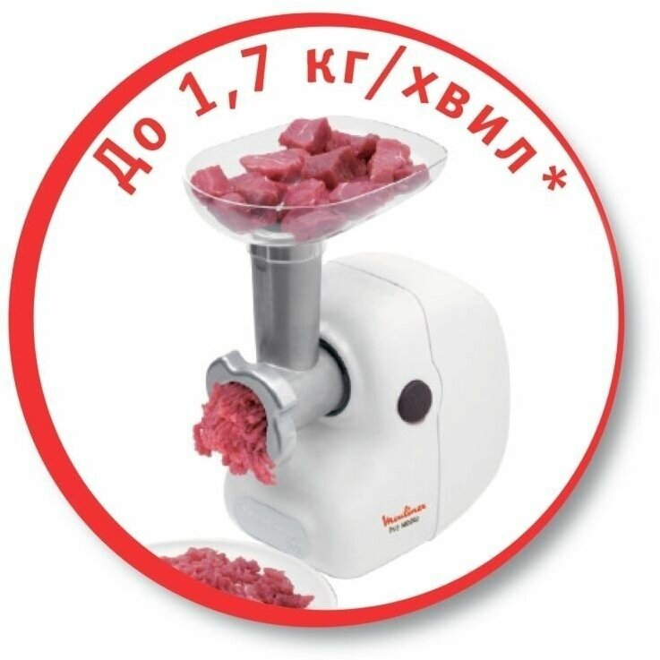 Rated power: 325 W, attachments: minced meat disc, shredding attachment, grater attachment, slicer, body material: plastic, capacity: 1.70 kg/min, features: dishwasher safe, compartment for network cable