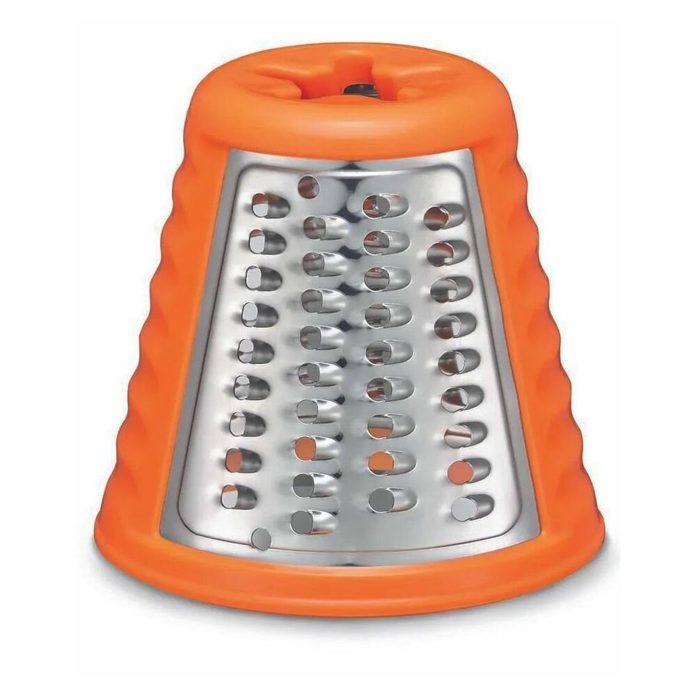 Compartment for storing attachments, rubberized feet, self-sharpening knife