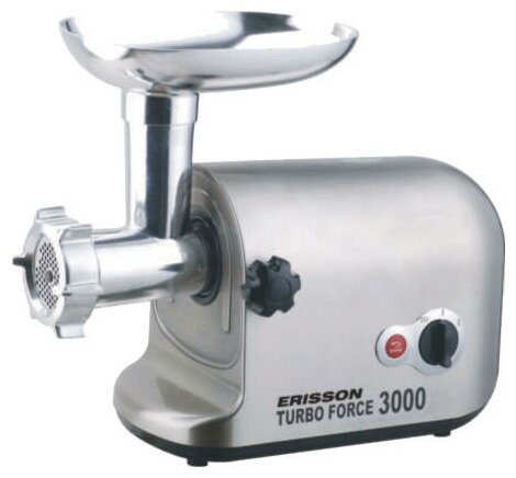 Nozzles: disk for minced meat, nozzle for preparing sausages, reverse system, features: overload protection, rubberized feet, number of perforated disks: 3