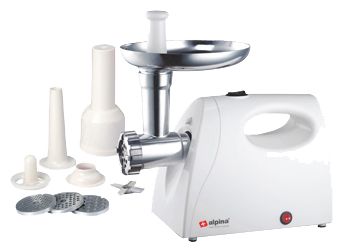 Rated power: 500 W, attachments: disk for minced meat, attachment for kebbe, attachment for preparing sausages, body material: plastic, reverse system, features: overload protection, rubberized feet, number of