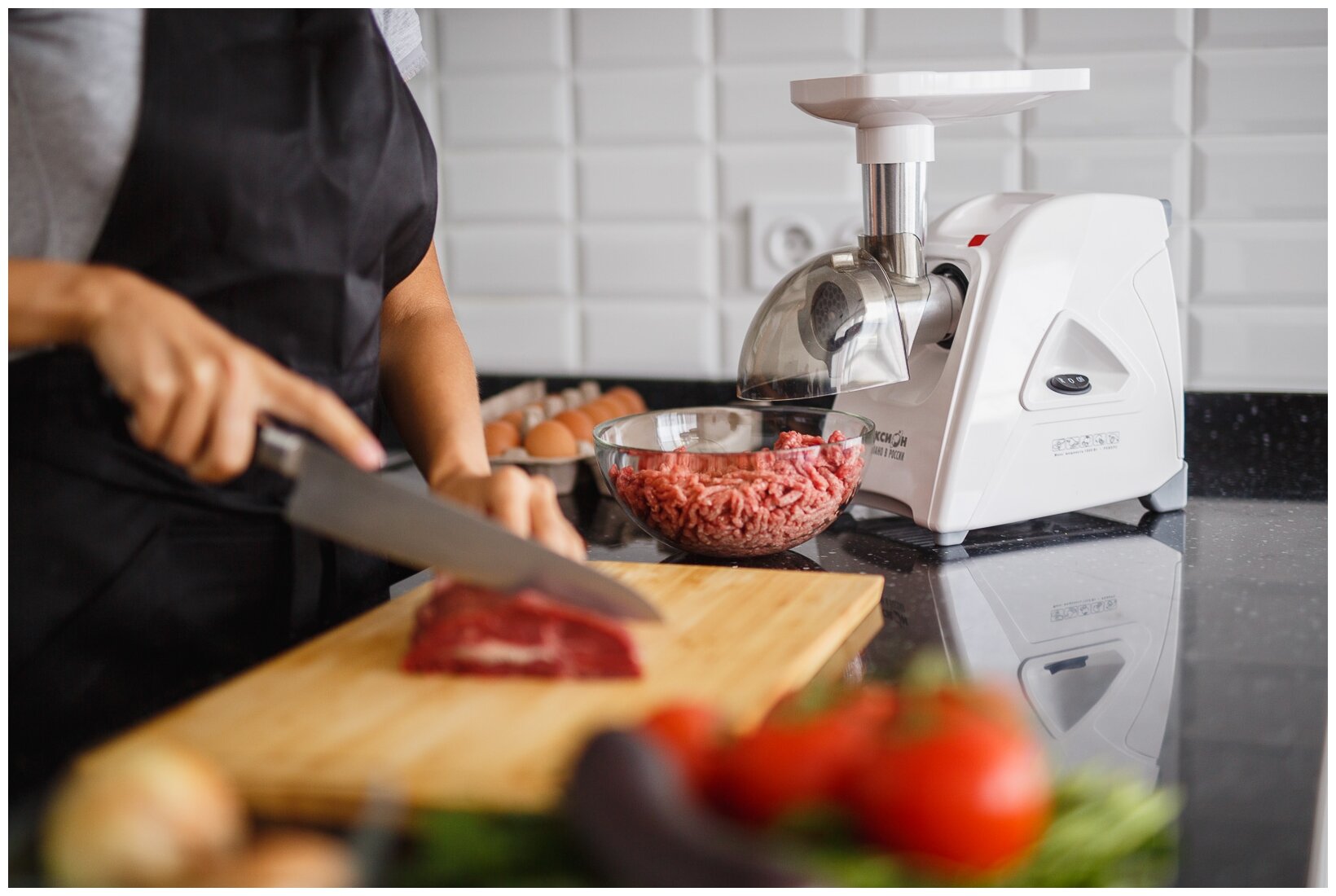 Tray material: plastic; number of attachments for preparing sausages: 2; number of grater attachments: 2; number of shredding attachments: 1