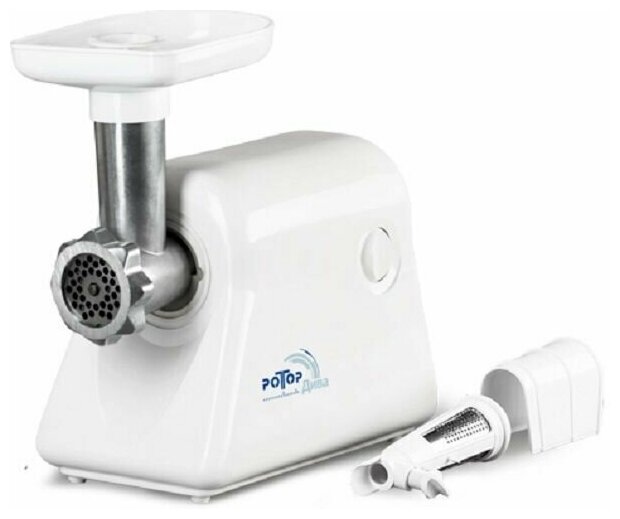 Description: Attachments: disk for minced meat, juicer, meat grinder, body material: plastic, productivity: 0.60 kg/min, features: overload protection, compartment for the power cord, compartment for storing attachments, rubberized feet,