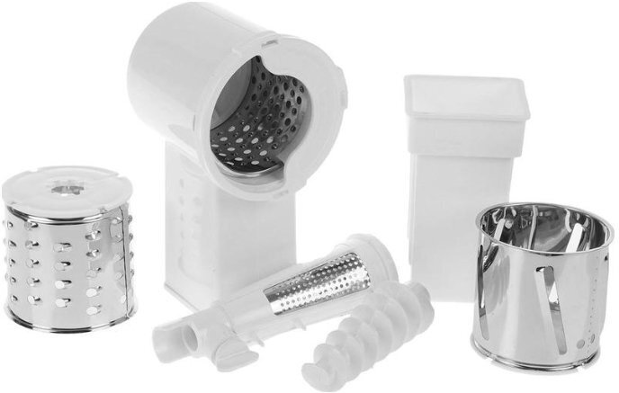 Rated power: 250 W, attachments: grater, juicer, body material: plastic, features: overload protection, dishwasher safe, rubberized feet