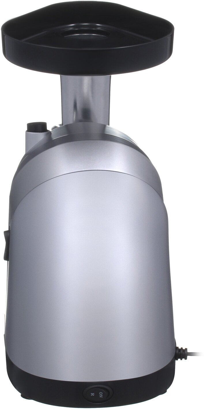 Pusher; tray material: plastic; number of grater attachments: 2; number of shredding attachments: 1; It is not allowed to wash the motor block, working chamber, auger, knife and cutting discs in a dishwasher